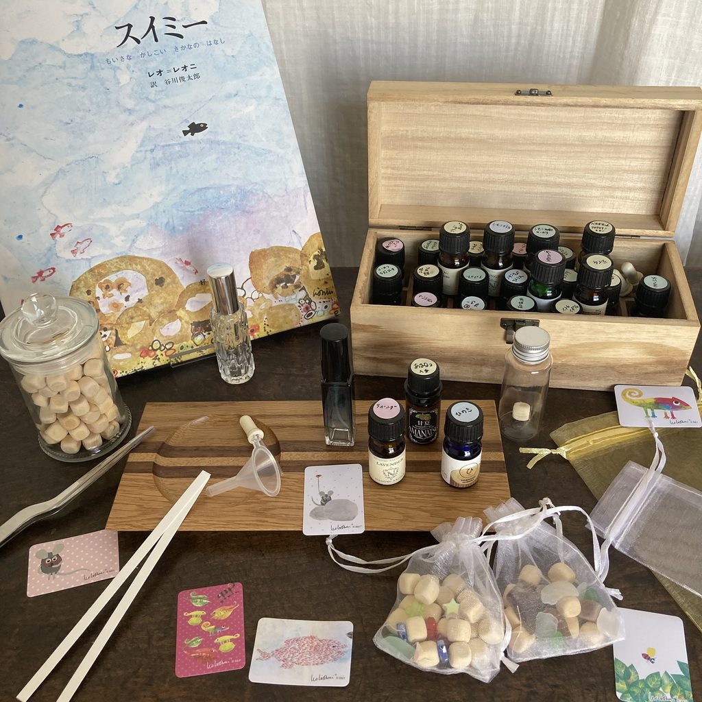 『スイミー』、『あおくんときいろちゃん』など、皆さんのよく知っているレオ・レオニの絵本の世界を香りで表現して、サシェとスプレーボトルでお持ち帰りいただきます。